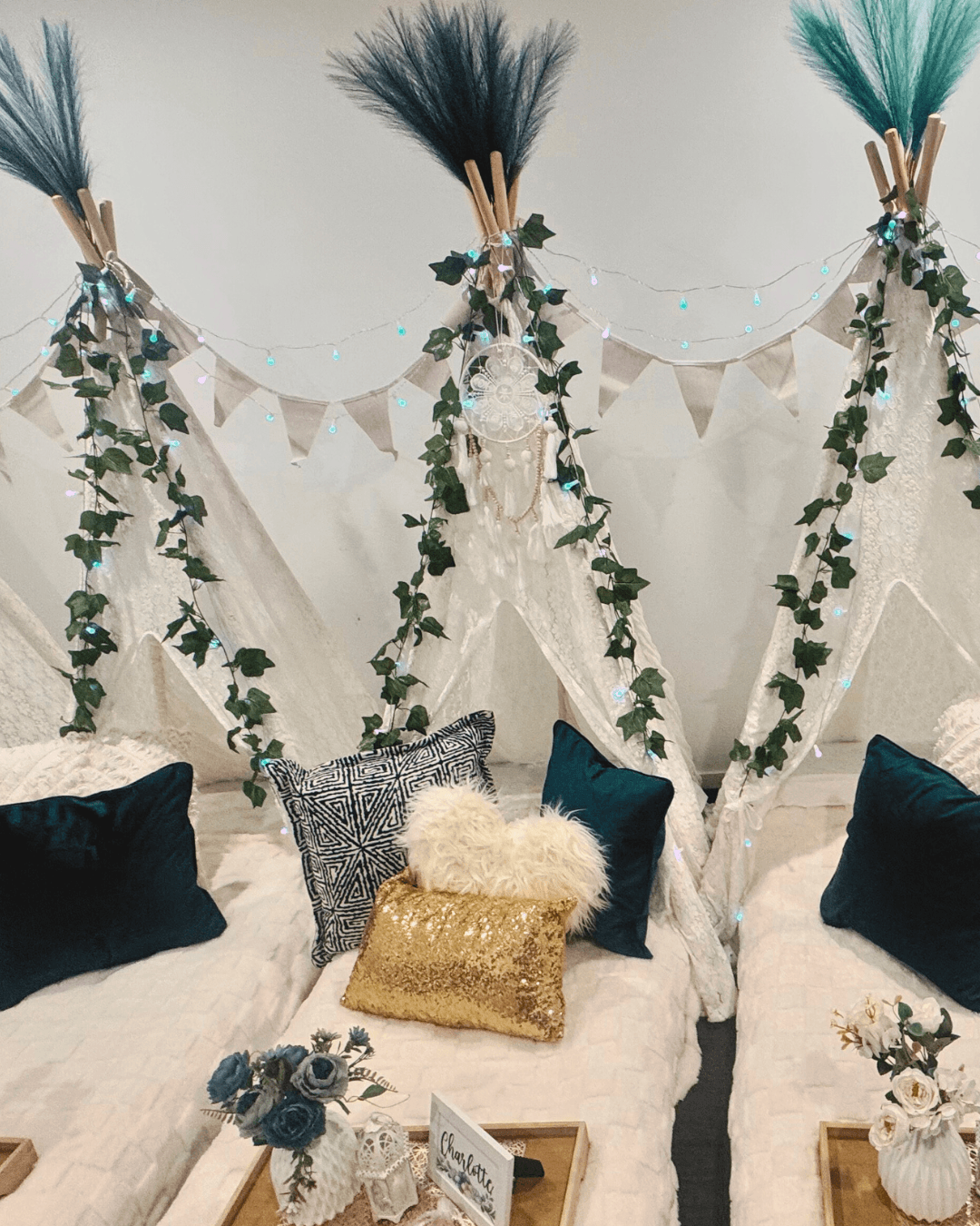 Book a party for your child and their bestie with our largest lace teepee for one night