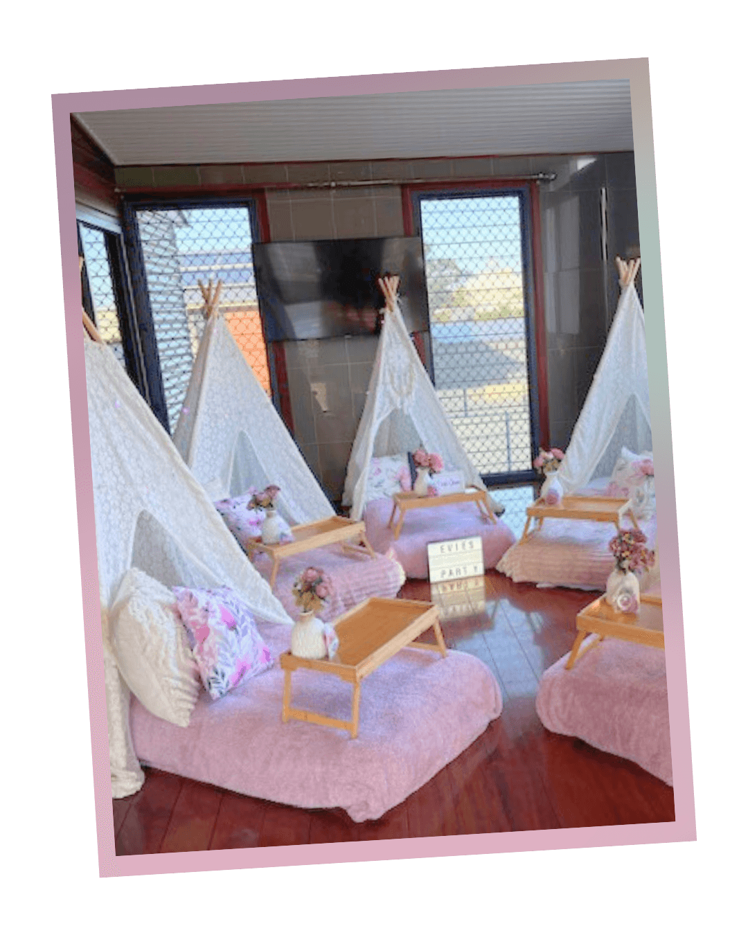 Love the look of a Teepee Corner sleepover but want to DIY it? Our Do-It-Yourself packages are the perfect budget-friendly option! We provide all the teepees, airbeds, lights, accessories, and a handy setup guide - you just pick up, set up, and return. It's slumber party fun made easy